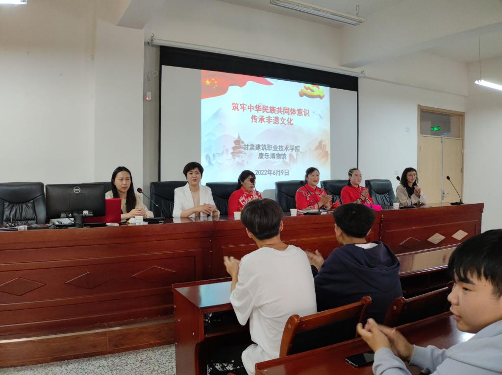为深入贯彻习近平总书记关于加强优秀传统文化保护的系列讲话精神,弘扬中华优秀传统文化,让学生真实感受优秀传统文化魅力,迎接党的二十大展开,6月9日下午,由我院和康乐县博物馆联合主办的“喜迎二十大召开——铸牢中华民族共同体意识 非遗文化进校园”活动在我院康乐校区举行,国家非物质文化遗产省级传承人文香莲、学院思政部教师和康乐县博物馆馆长马正芳、学生代表参加了此次活动。