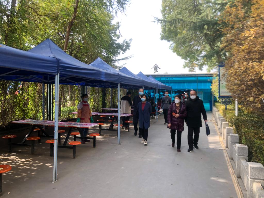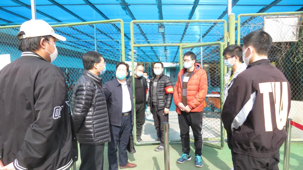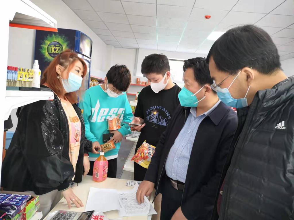 督查组一行先后查看了学院留观室、教学楼、学生宿舍、食堂、校内超市等区域的疫情防控情况,详细询问了各区域每天消杀情况,以及学院封闭管理后校内人员管控、物资保障、线上教学、疫情期间学生心理疏导干预、留观及解除留观人员情况、在校值守人员的日常生活和志愿者服务等疫情防控重点任务落实情况。在校园督查过程中,督查组与学生交谈时了解了学生热水供应、食堂饭菜质量、学校发放口罩、餐食超市物价等情况,并安抚学生要克服目前的困难,做好防护,认真完成线上学习任务。在女生宿舍一号楼,督查组了解了学生宿舍的消杀情况,指出要勤通风、常洗手,做好个人卫生,共同保持一个良好的集体环境。坚定信心、科学防疫、共渡难关。得知学生目前情绪稳定,特殊时期还在认真做好线上学习时,督查组给予了学生高度的评价。在食堂,督查组在取饭口前查看了饭菜,询问了食堂饭菜供应情况和工作人员管理情况后表示,食堂工作人员责任重大,要严格落实学院疫情防控各项规定,确保在校的每一位师生都能健康用餐。学院党委书记、院长王娟丽表示,学院要进一步严格落实疫情防控工作各项要求,查缺补漏,迅速整改督查组指出的各项问题。全院师生凝心聚力,坚决筑牢疫情防控屏障,一鼓作气,坚决打赢这场疫情防控遭遇战。