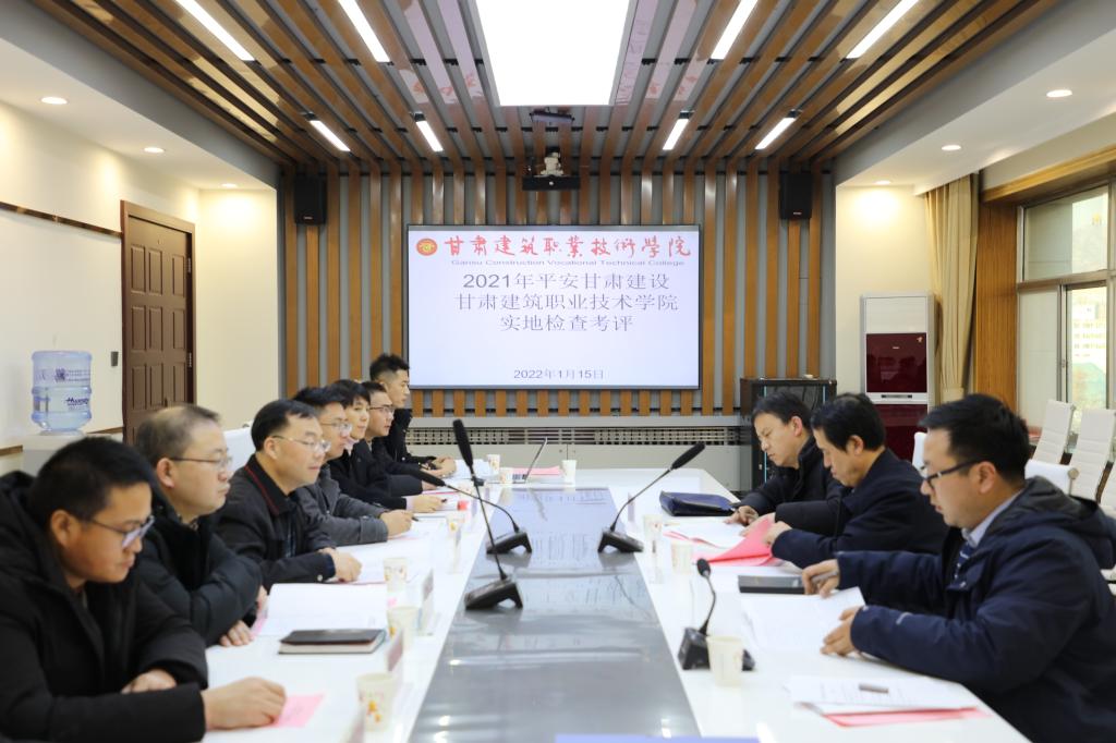 1月15日,平安甘肃建设第十二考评组一行莅临学院,对学院2021年平安校园建设工作进行实地检查考评。学院党委委员、副院长高忠有,党委委员、组织人事处处长、院办主任张长颖,以及相关部门负责人参加检查工作汇报会。