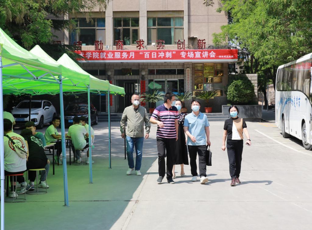 学院党委书记、院长王娟丽,甘肃第二建设集团有限责任公司组织部一级主管王慧君,学院招生就业处处长王东晓,副处长吴沛晟一行走访了招聘会现场,实地了解了招聘企业的用人需求和工作情况,围绕学院目前的专业设置和人才培养进行了详细的沟通,并现场询问了参加招聘会的学生目前就业意向、就业进展以及问题困难等。