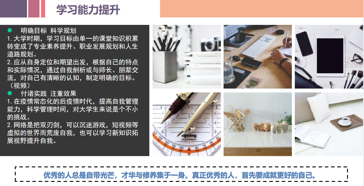 为促进新生更快的了解适应大学生活,在疫情防控期间,缓解同学们的焦虑情绪,提高线上授课学习效果,近期学院各系各班级与大学生心理健康教育中心,积极开展专题讲座、主题班会和班级文化活动,引导学生调整心态,积极适应。让我们一起来回顾一下,相信能够给予你一些启发,一些帮助~