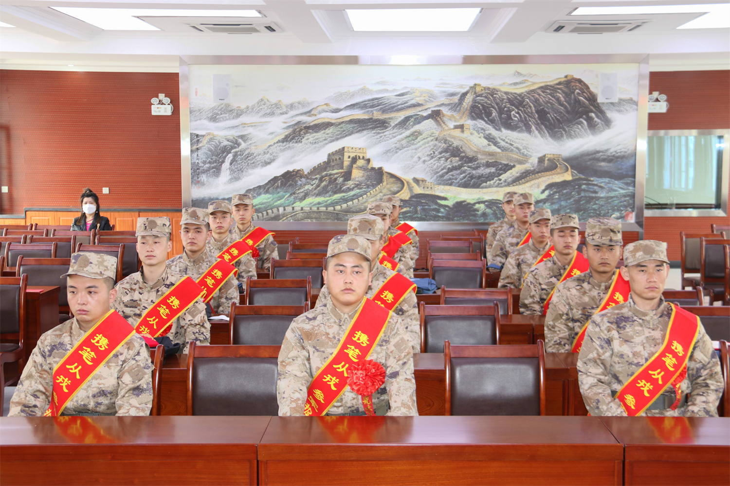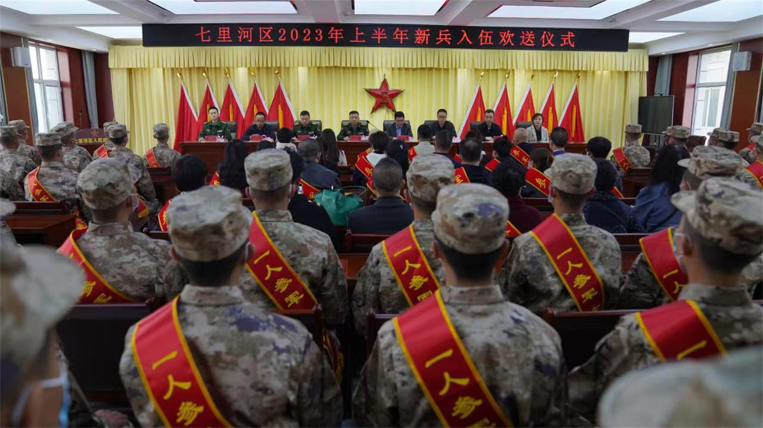 “携笔从戎报国志、青春无悔正当时”,3月15日上午,甘肃建筑职业技术学院2023年春季大学生参军入伍欢送会在七里河武装部举行,学院党委委员、副院长高忠有,七里河武装部副部长李建,学院学生工作科、系书记、辅导员代表及相关工作人员参加了欢送会。会议由学生工作科科长许庆兵主持。