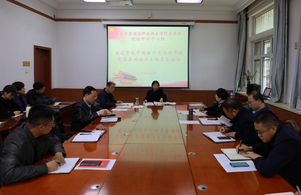 4月3日,甘肃建筑职业技术学院党委理论学习中心组召开专题学习会议。党委书记、院长王娟丽及领导班子、中心组全体成员参加学习。党委副书记王继伟主持学习。