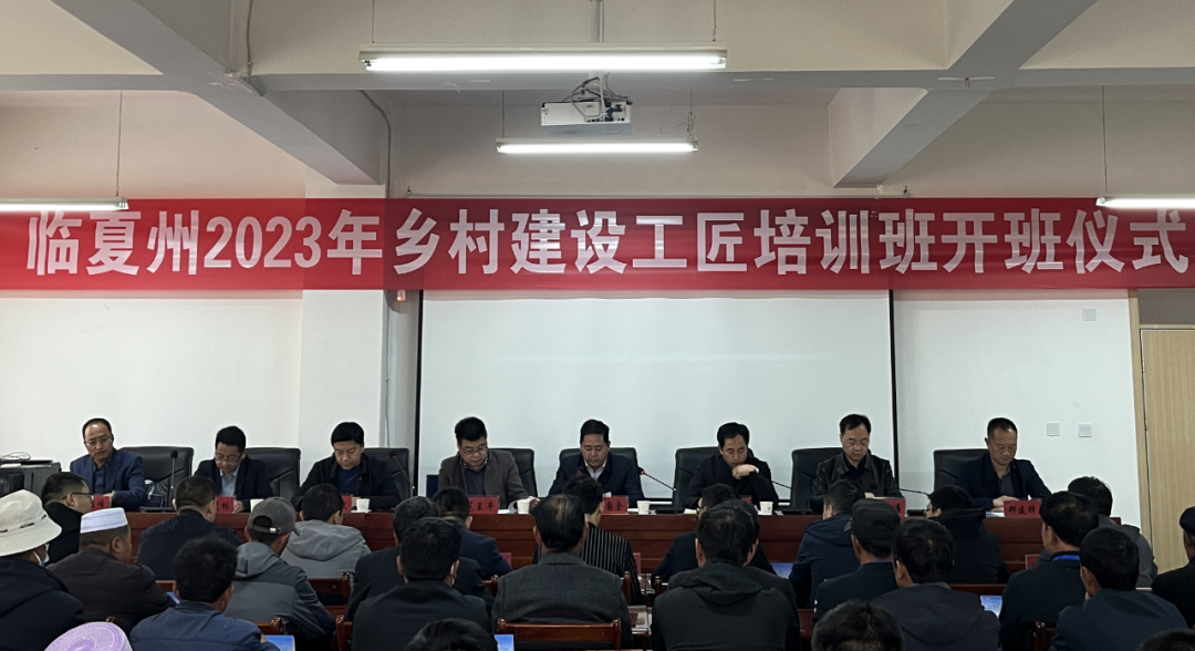 省住建厅、州住建局、州人社局、康乐县政府、甘肃建筑职业技术学院、中铁二十一局以及各县市参训学员共130余人参加开班仪式。此次培训为期8天,主要包括理论授课和现场观摩学习及实操训练,将全面提升临夏州乡村建设工匠技术水平和职业素养,提高乡村建设工程质量,确保农村建房质量安全平稳可控。