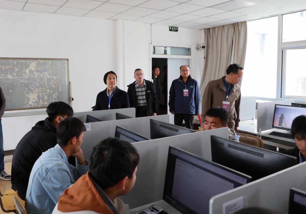 2023年“中银杯”甘肃省职业院校技能大赛甘肃建筑职业技术学院赛点监督员兼赛点仲裁组长、兰州新区职教园区服务保障中心副主任魏和平,赛点首席专家兼仲裁邵转吉、张军一行来到考场进行巡视,甘肃建筑职业技术学院党委书记、院长王娟丽,党委委员、纪委书记、监察专员贺建伟及相关负责人陪同,详细了解了比赛场地和设备的准备情况,以及比赛期间各项服务保障措施。
