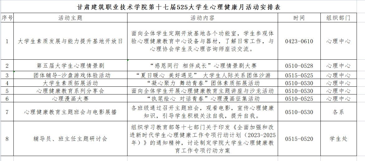 【三抓三促】甘肃建筑职业技术学院第十七届 5.25我爱我 大学生心理健康月活动开始啦