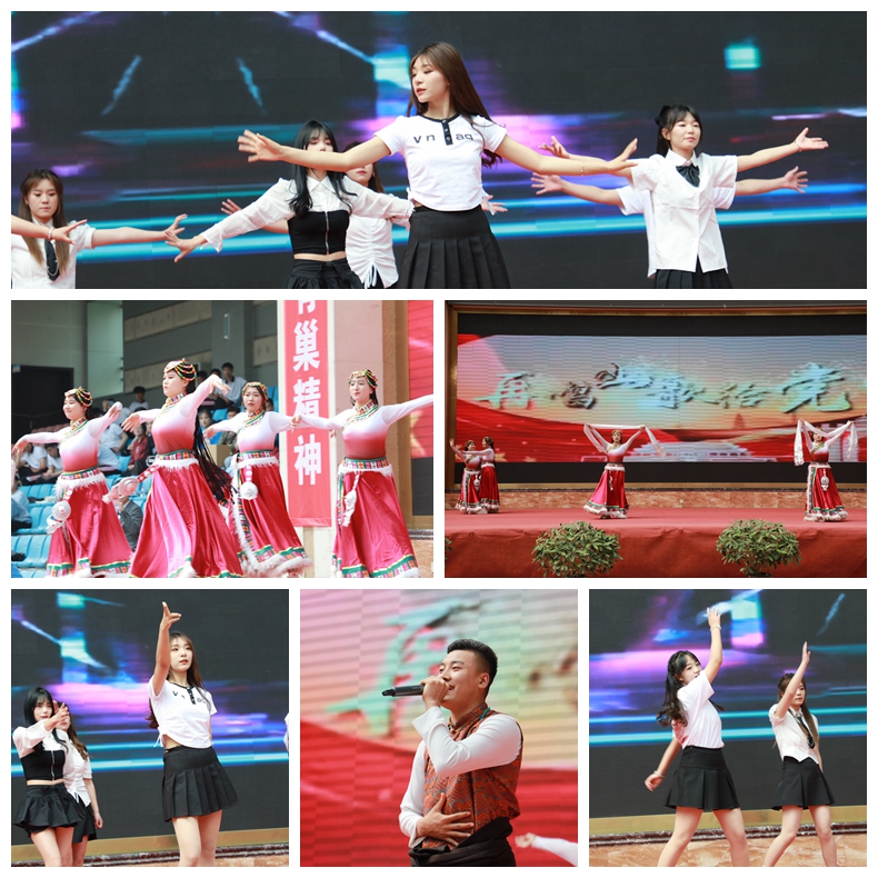 随后,进行了节目演出,由学院六个教学系和团委为大家带来了七个节目。歌舞类节目既体现了民族特色,也蕴含青春活力,相声类节目以诙谐幽默的形式表达了当代青年的朝气,团体合唱体现出了大学生的爱国情怀,表演过程中,现场掌声不断,气氛热烈。