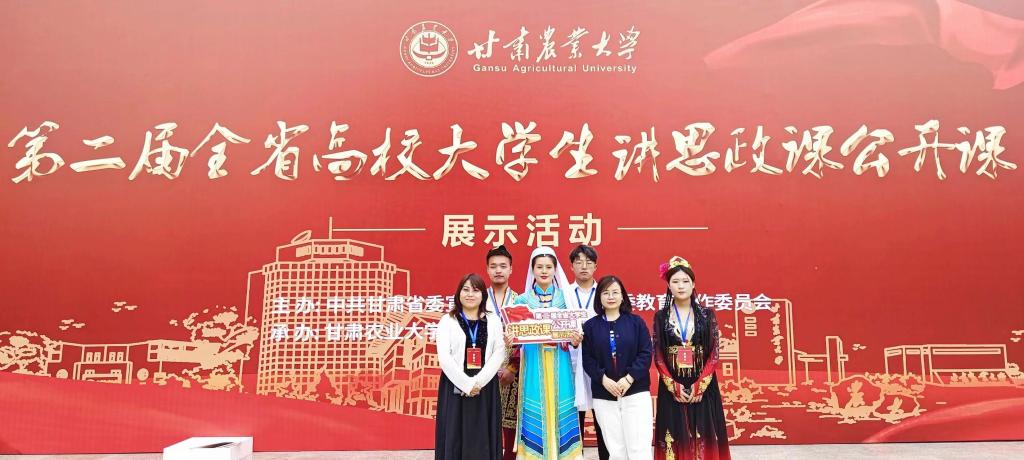 5月5日,由省委宣传部、省委教育工委主办,甘肃农业大学承办的第二届全省高校大学生讲思政课公开课展示活动总决赛在甘肃农业大学落下帷幕。经过激烈角逐,由学校马克思主义学院哈小琴、王瑛、吕莎莎老师指导学生团队马婧琦、牟仁杰、张伟、余浩洋、黄钰荣、靳海涛的参赛作品《疆将锵锵--弘扬兵团精神,凝聚奋斗力量》,获得“甘肃省高校大学生讲思政课公开课展示活动”三等奖。