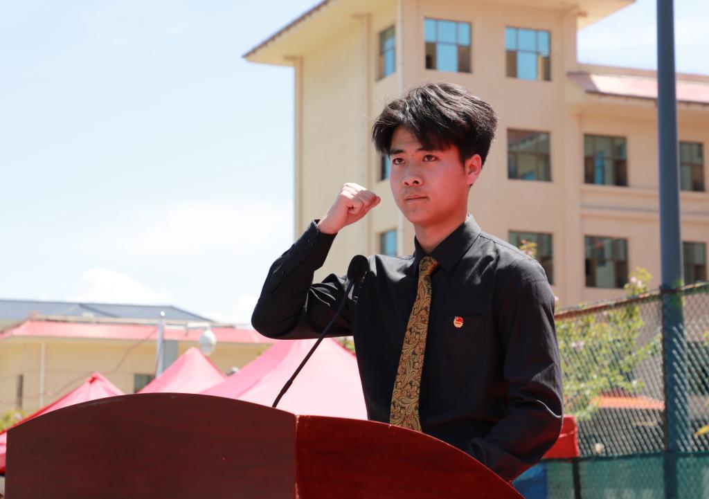 在领誓人严广鹏的带领下,举行了新团员入团仪式,老团员重温了入团誓词。