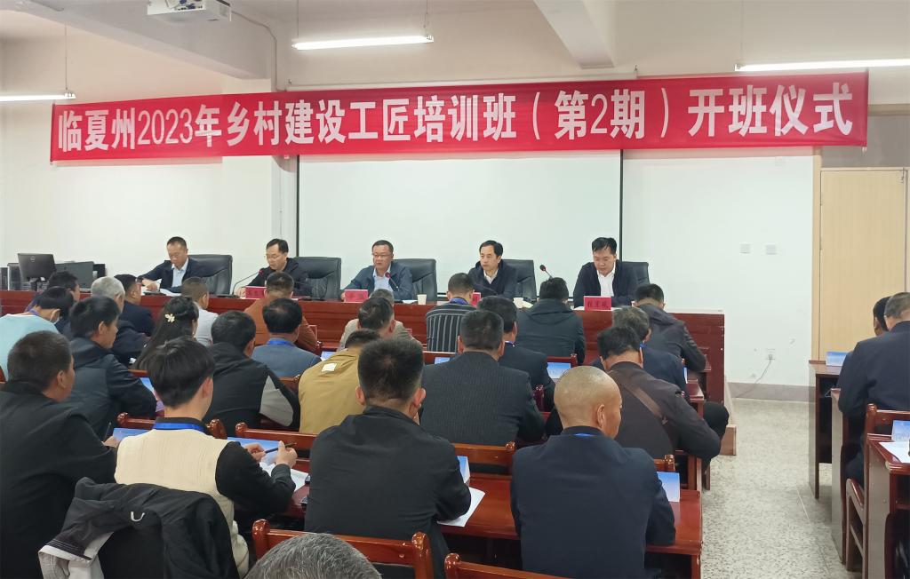 州住建局、州人社局、康乐县政府、甘肃建筑职业技术学院、中铁二十一局以及各县市参训学员共120余人参加开班仪式。此次培训为期8天,主要包括理论授课和现场观摩学习及实操训练,将全面提升临夏州乡村建设工匠技术水平和职业素养,提高乡村建设工程质量,确保农村建房质量安全平稳可控。