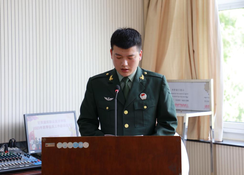 首先由许庆兵同志宣读了《甘肃建筑职业技术学院关于做好2023年大学生应征入伍工作的通知》,并通报了学院2023上半年应征入伍情况。