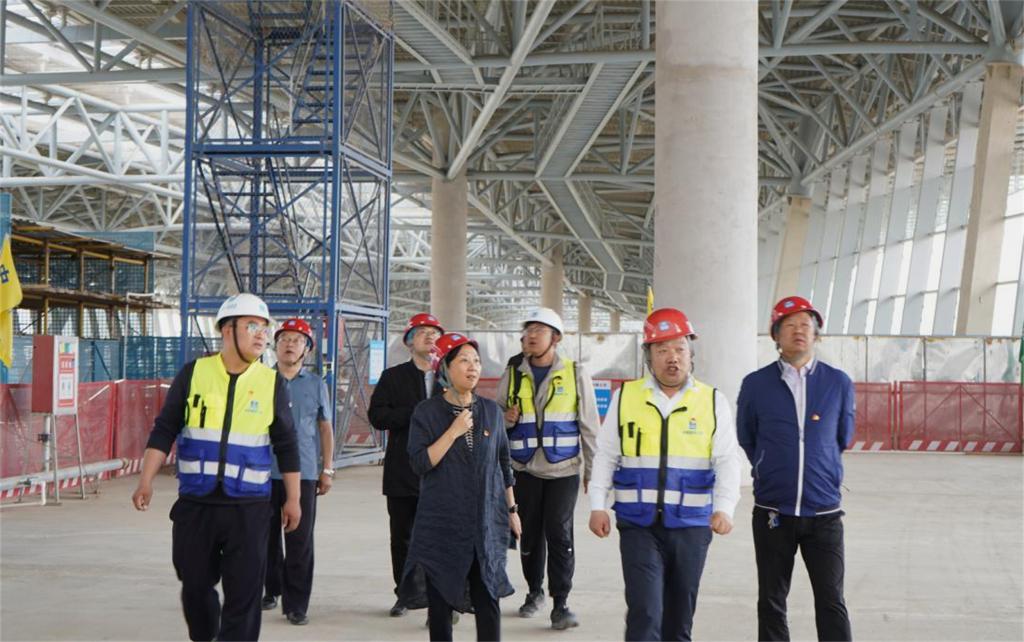 5月26日,在中川机场T3航站楼项目现场,我院优秀毕业生中建八局西北公司甘肃分公司总工程师伍维强同志详细介绍了中建八局的发展历程和光辉业绩,讲解了中川机场T3航站楼的设计和施工情况,王娟丽同志对我院优秀毕业生所取得的职业发展成果表示祝贺,对其能参与建设目前我省单体建筑面积最大的标志性民生工程表示由衷的祝贺,并表示伍维强是我院专业育人成果的优秀杰出代表。会后,王娟丽同志一行先后参观了中川机场T3航站楼项目党性教育基地、智能建造体验中心和T3航站楼施工现场,在参观的过程中,一行人与项目相关人员就党的建设、施工管理、工艺技法等方面开展进一步学习交流。