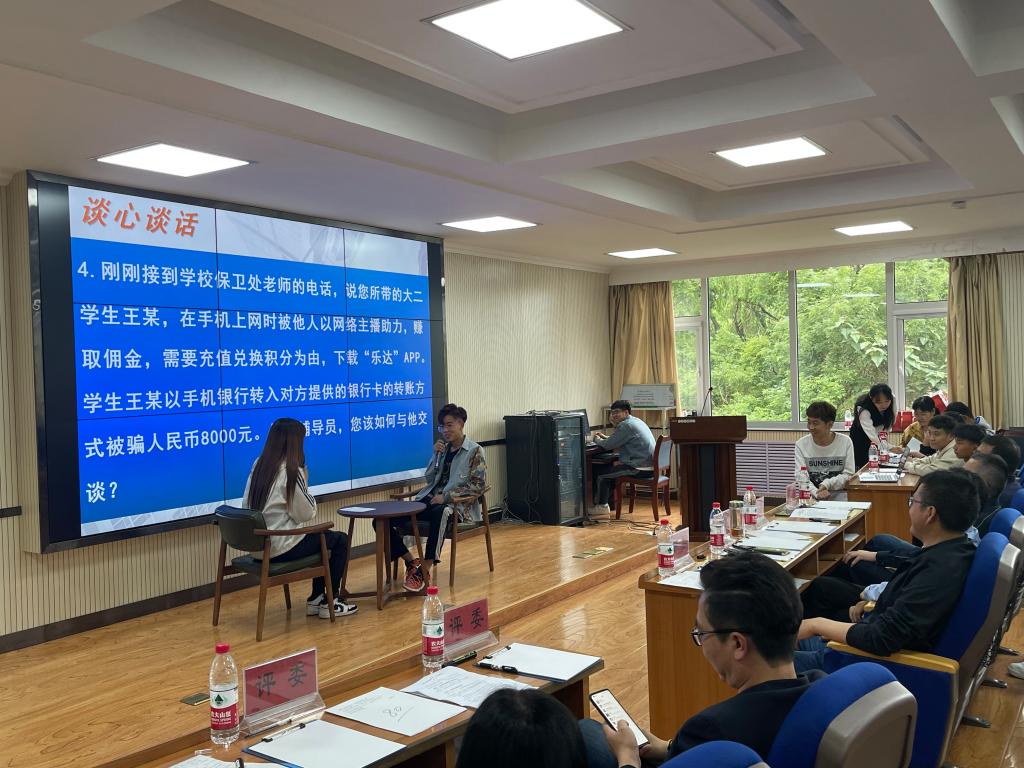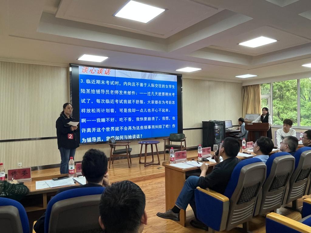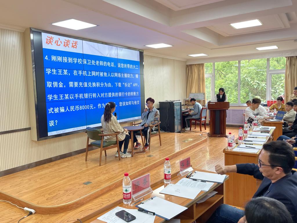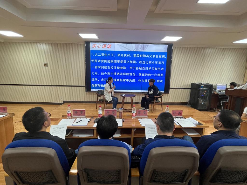 比赛分为两个环节,设置基础知识测试(笔试)、案例研讨及谈心谈话三个项目。全体一线专兼职辅导员、班主任共计34人参加了第一环节的基础知识测试,成绩前10名的选手晋级参加了第二环节的案例研讨和谈心谈话。