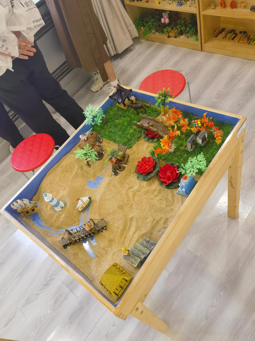 明亮的灯光、干净的地板、安静的空间、有趣的沙具,带来的是温馨和轻松的感受。当进入沙盘室,看到摆放整齐的沙盘和各种沙具,同学们仿佛被带回了童年,喜悦之情溢于言表。学院大学生自我和谐与人际关系团体辅导沙盘游戏体验活动“夏日暖心 美好遇见”之旅,在这个五月开启。