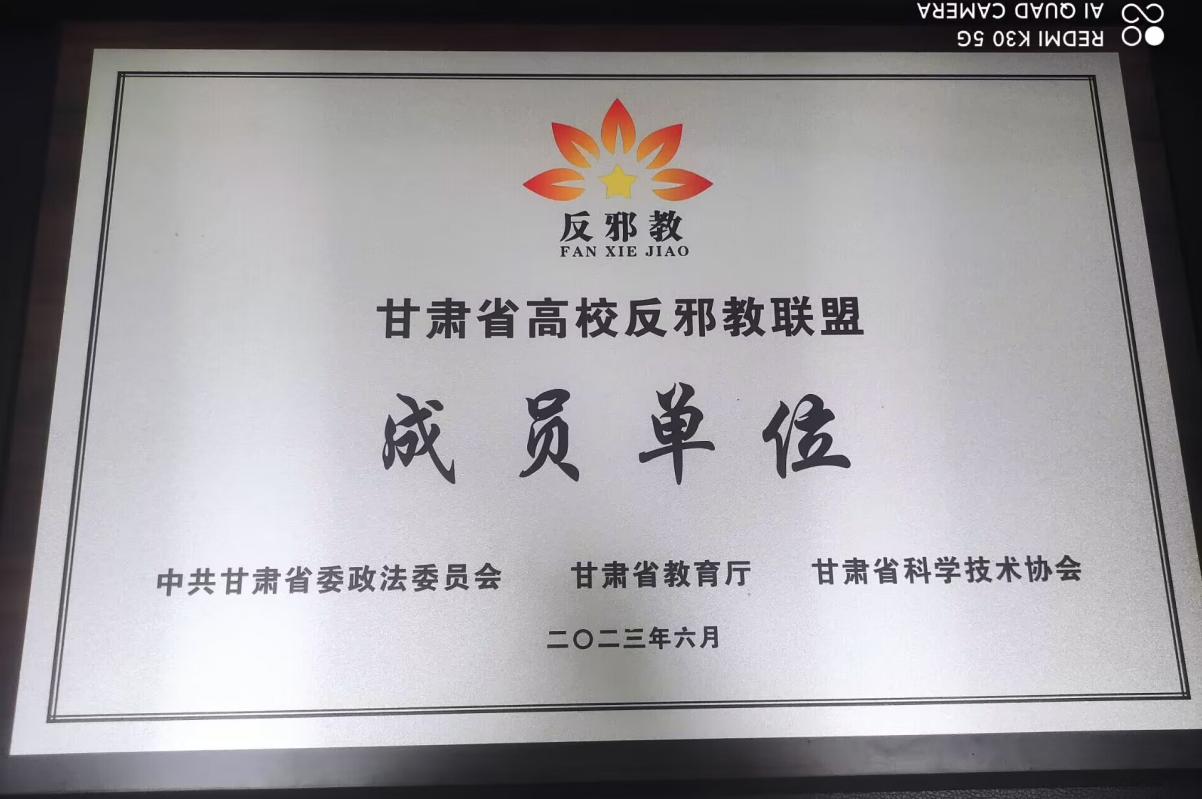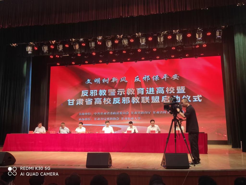 6月16日,中共甘肃省委政法委员会、甘肃省教育厅、甘肃省科学技术协会在甘肃农业大学举办了反邪教警示教育进高校暨甘肃省高校反邪教联盟启动仪式,我院通过一年申报、审核,成功入选第一批全省高校反邪教联盟成员单位。