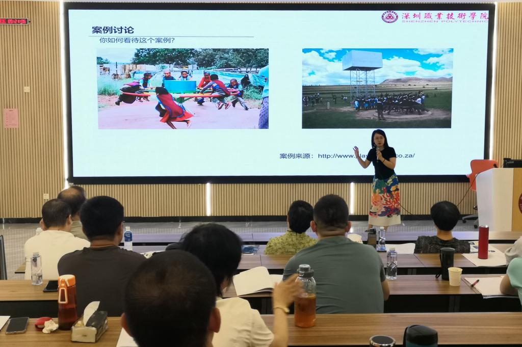 开班仪式上,李月介绍了深圳职业技术学院的办学基础、办学优势等概况。她讲到,建校以来,深职院人艰苦创业,开拓进取,不断创新教育教学理念、办学体制机制和人才培养模式,创造了中国高职教育的多个第一。学校依托珠三角产业发展,秉承深圳特区改革创新精神,坚持把立德树人作为学校教育的根本任务,立足于职业教育产教融合的办学特色,各项事业取得骄人成绩,被誉为中国高职教育的“一面旗帜”。