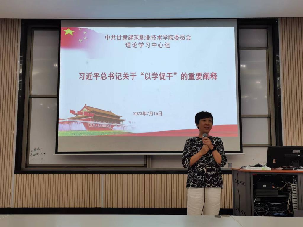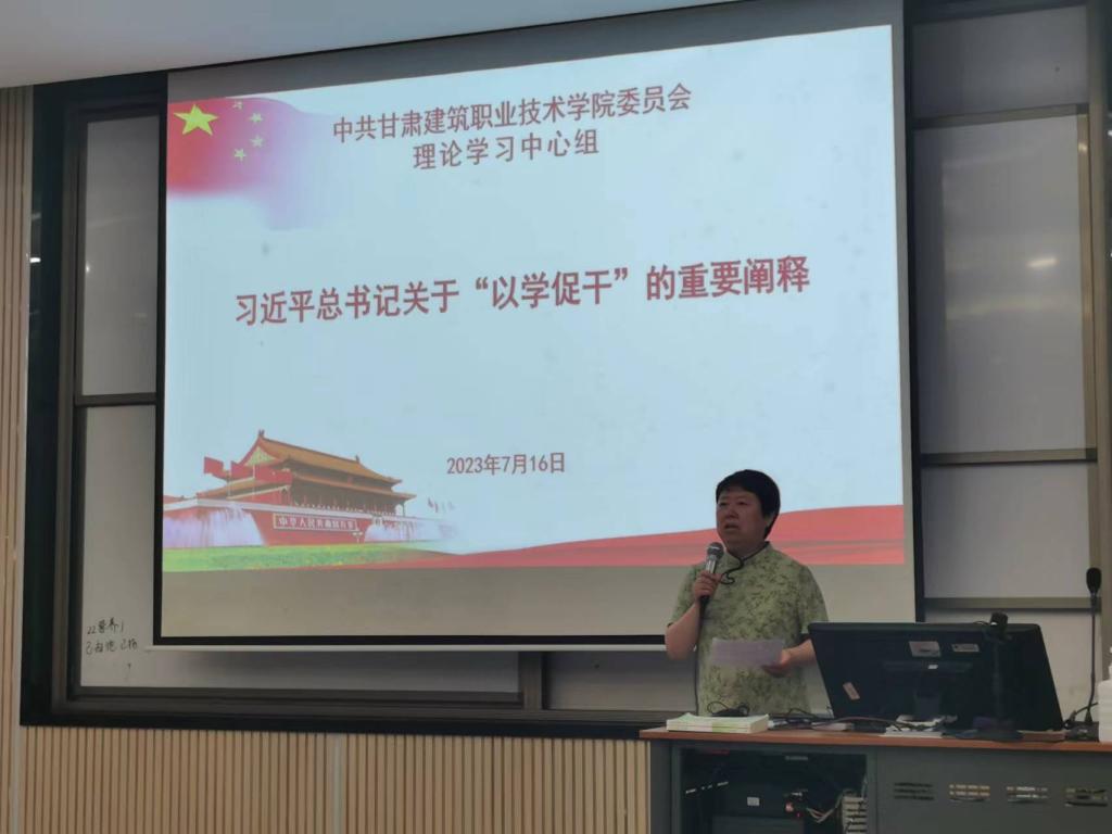党委委员、副院长许洁领学了习近平总书记在江苏考察时,针对“以学促干”做出的深刻阐述。习近平总书记强调,各级党组织要教育引导党员干部落实"重实践"要求,坚持学思用贯通、知信行统一, 匡正干的导向,增强干的动力, 形成干的合力,在以学促干上取得实实在在的成效。并围绕树牢造福人民的政绩观、鼓足干事创业的精气神、形成狠抓落实的好局面三个方面做了交流发言。