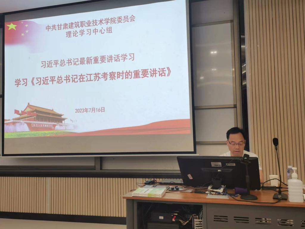学院党委委员、副院长高忠有领学了习近平总书记考察江苏重要讲话重要指示精神。在讲话中习近平总书记强调,江苏要完整准确全面贯彻新发展理念,继续在改革创新、推动高质量发展上争当表率,在服务全国构建新发展格局上争做示范,在率先实现社会主义现代化上走在前列,奋力推进中国式现代化江苏新实践,谱写“强、富、美、高”新江苏现代化建设新篇章,并重点强调了六个方面的重点工作。