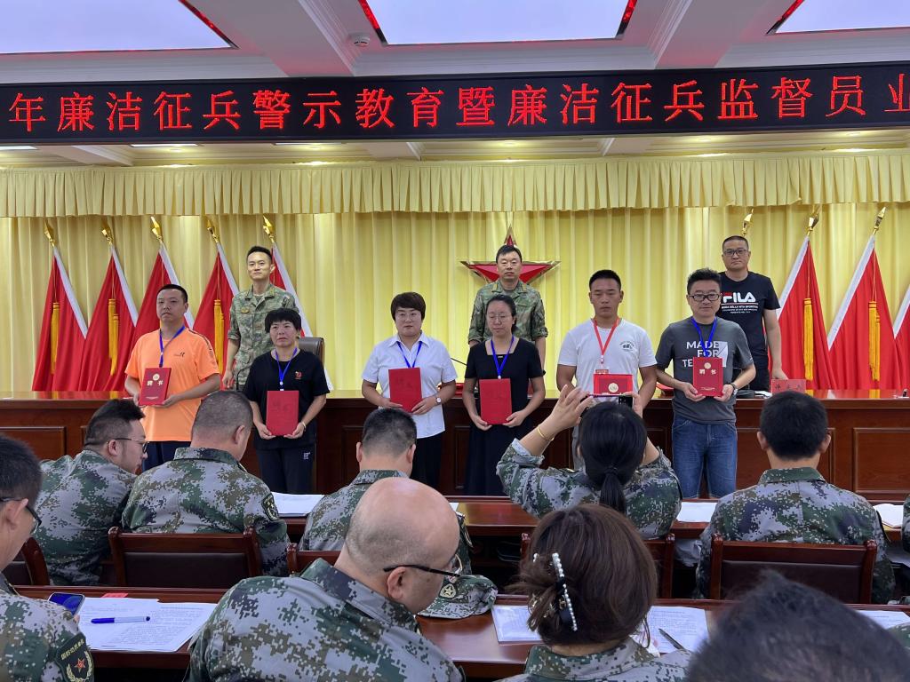 会议介绍了今年下半年征兵工作安排和进展情况,为全体廉洁征兵监督员颁发了聘书和监督证,围绕上级文件规定及相关要求,就廉洁征兵监督员职责、监督内容、工作方式等进行业务培训,有效提升了廉洁征兵监督员认真履职的责任意识和能力素质。