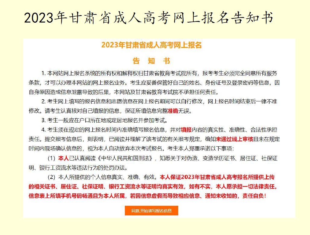 2023年甘肃省成人高考 网上报名流程