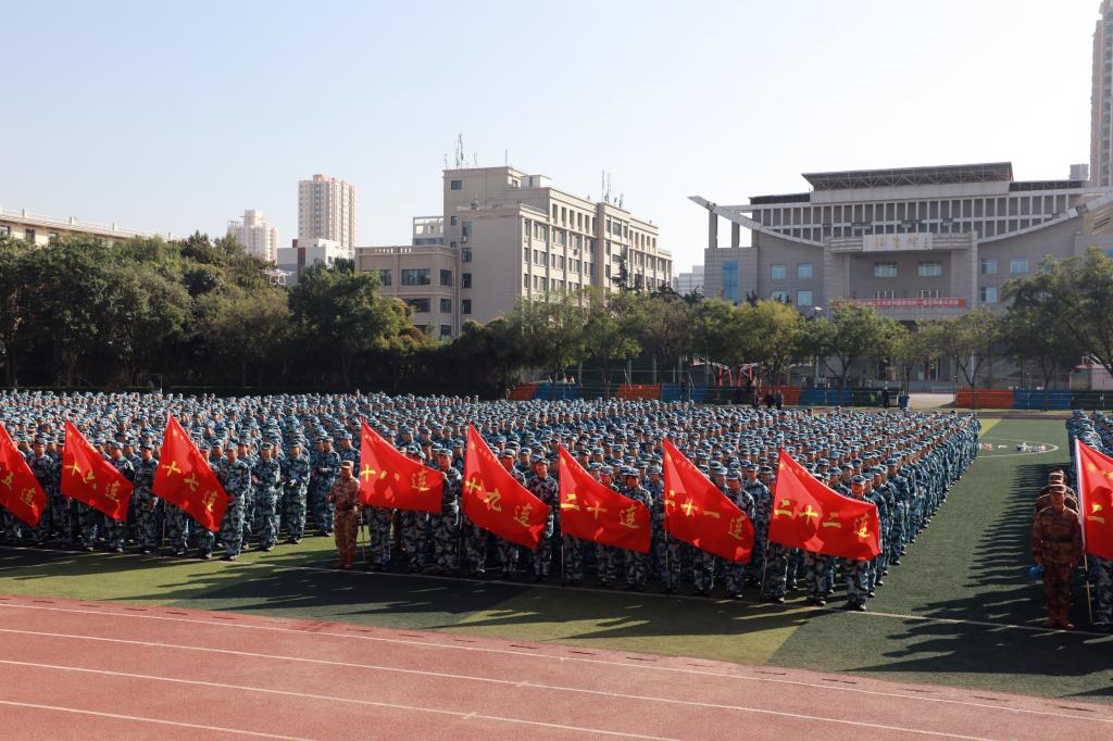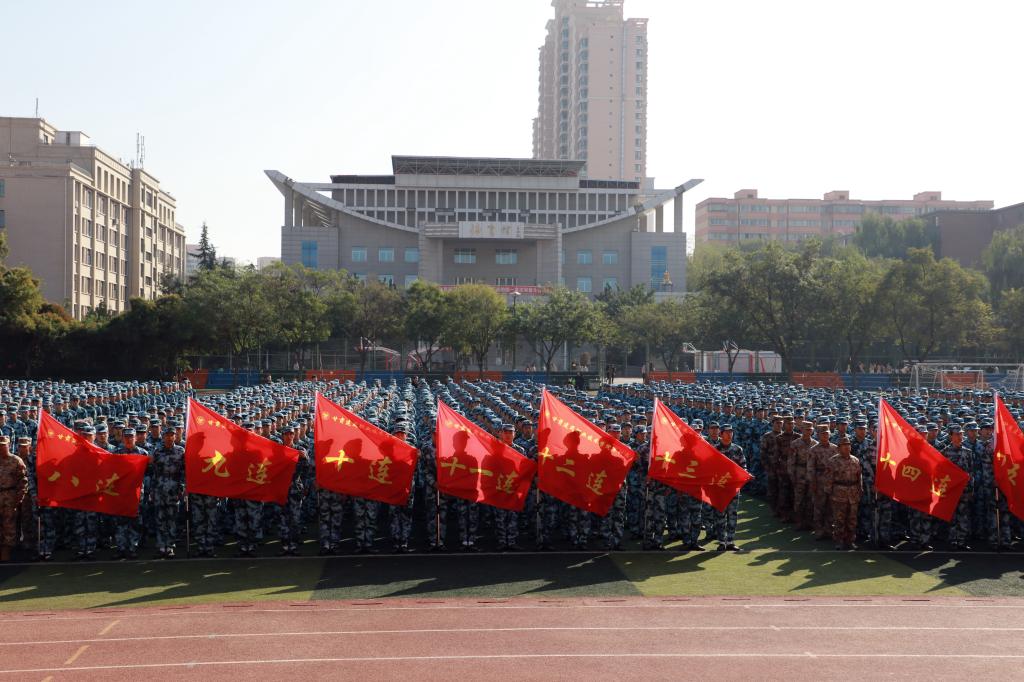 10月9日,甘肃建筑职业技术学院2023级新生开学典礼暨军训动员大会在风雨大操场成功举行。学院党委书记、院长王娟丽及领导班子成员,承训部队负责人、军训团副团长杨锦国,军训团工作人员及学院相关部门负责人参加,党委委员、副院长高忠有主持仪式。