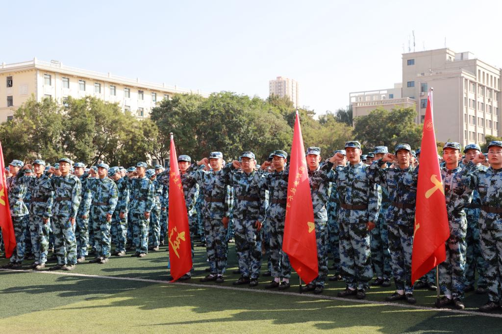 参加军训全体同学向军训团团旗宣誓,随着《中国人民解放军军歌》奏响,甘肃建筑职业技术学院2023级学生军训拉开帷幕。