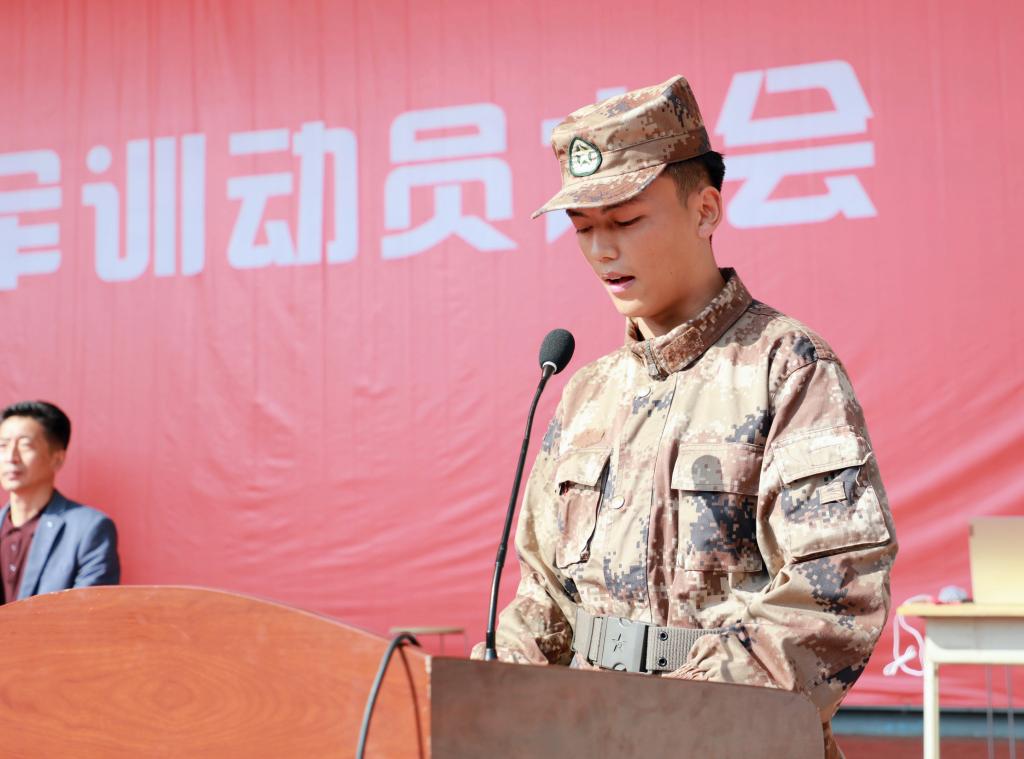 王娟丽同志在致辞时向2023级全体新生表示热烈欢迎,向承担军训任务的全体教官和服务保障人员致以崇高的敬意和感谢。她讲到,今年恰逢学院建校六十五周年,随着新校区的落成,办学条件持续提升,在这个重要的节点,甘肃建院迎来了2023级新生,大家即将在新的环境开始美好的人生旅程。她表示,近年来学院聚焦行业发展需求、坚持校企合作办学、创新人才培养模式,在教育教学、人才培养、专业建设和各类比赛中都取得了不俗的成绩。她希望2023级的各位同学能够在学习中收获知识,在实践中增长阅历,挥洒青春、砥砺前行,并提出了三点要求,一是志存高远,涵养家国情怀,把个人梦想同强国建设的时代使命结合,积极投身技能报国、服务社会;二是崇德向善,塑造良好品格,带头弘扬中华优秀传统文化和践行社会主义核心价值观,弘扬青春正能量;三是勤学不怠,练就过硬本领,要把学习作为首要任务,构建广博的知识体系和扎实的专业根基;四是严守纪律,听从指挥、刻苦训练,全身心投入并圆满完成军事技能训练各项任务。