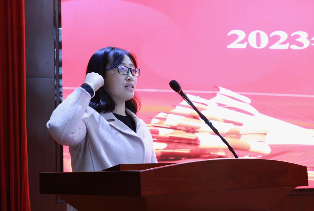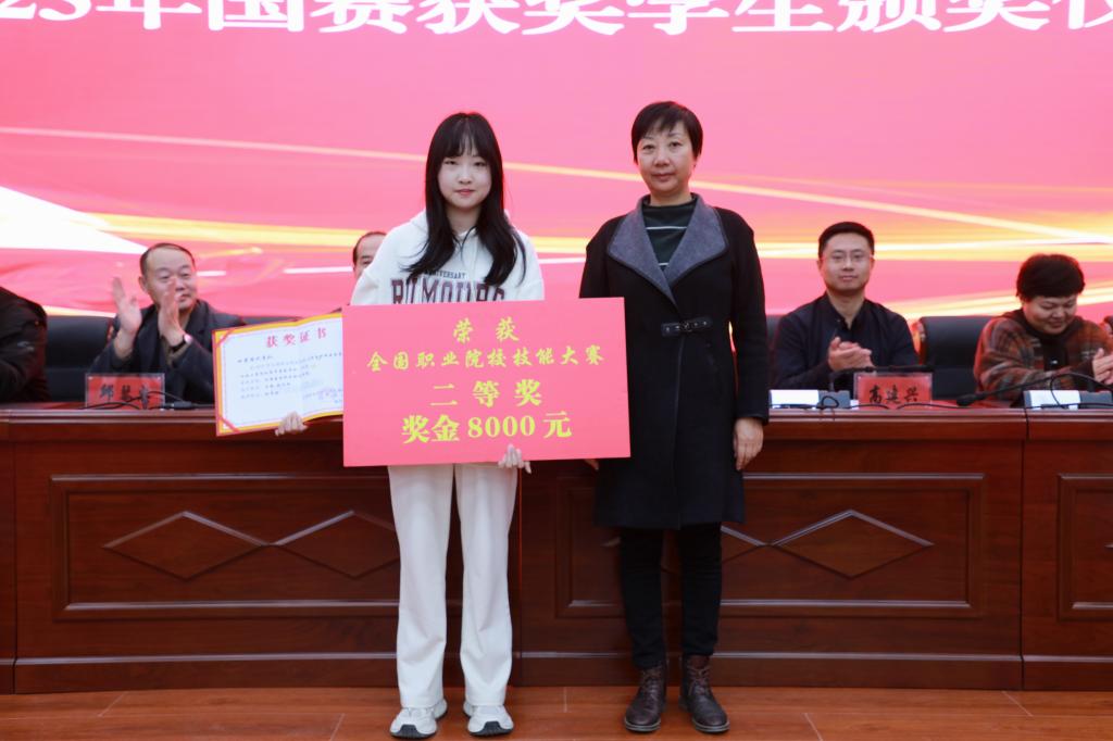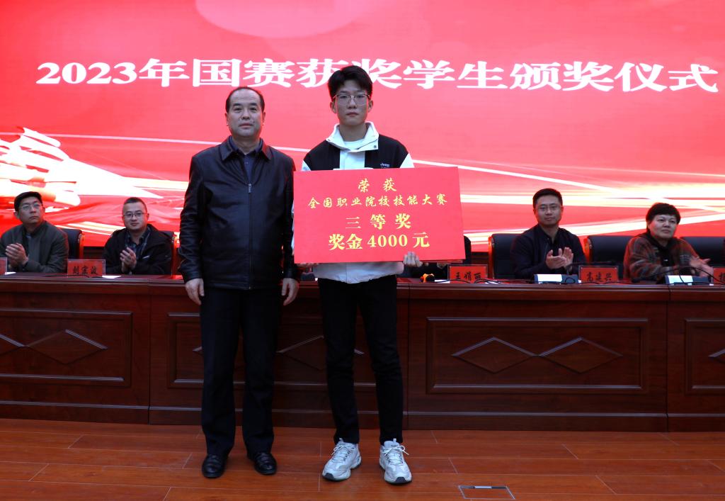 随后,学院领导为国赛获奖学生颁奖。颁奖结束后,建筑经济管理系何丽琴老师作为赛项裁判代表宣誓;建工系建筑工程技术专业魏鹏扬同学作为参赛学生代表宣誓。