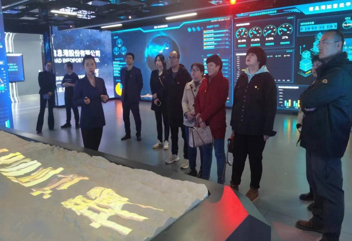 11月3日上午,机关第四党支部组织全体党员集体观摩了丝绸之路信息港公司数字运营中心,了解学习了信息港公司原创技术研发基地及成果转化情况。信息港公司是甘肃省委省政府为融入“一带一路”发展、建设数字甘肃、发展数字经济批准成立的省属国有企业,是全省工业互联网、大数据、网络安全三大产业链的链主企业。参观过程中,信息港公司工作人员向机关第四党支部各位党员同志详细介绍了信息港公司在技术创新、科技成果、人才引进和产业布局等相关领域的成果。