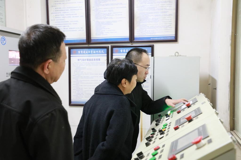 随后,一行人来到了锅炉房与值班人员进行了实地查看,知悉了春节期间锅炉的值班和维护工作,并查看了相关设备的实际运转情况,王娟丽同志叮嘱值班人员,务必尽心尽责,紧盯各个环节,不断提高安全生产意识,确保学院春节和正常工作期间的供暖工作,保证供热效果。