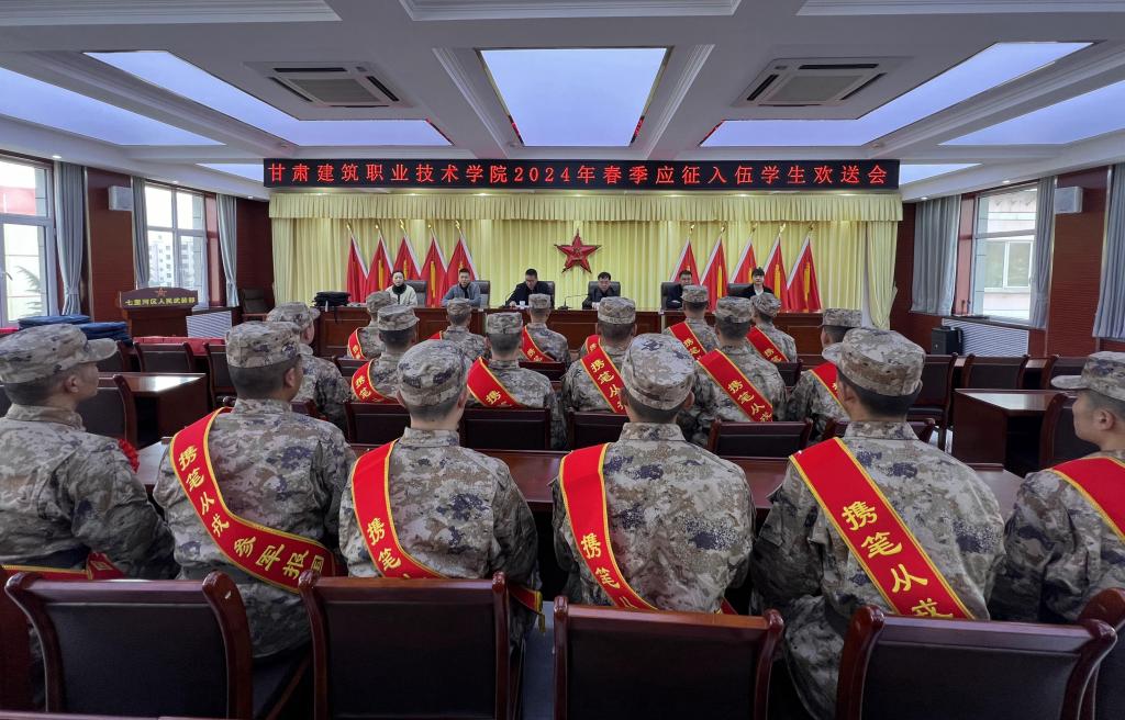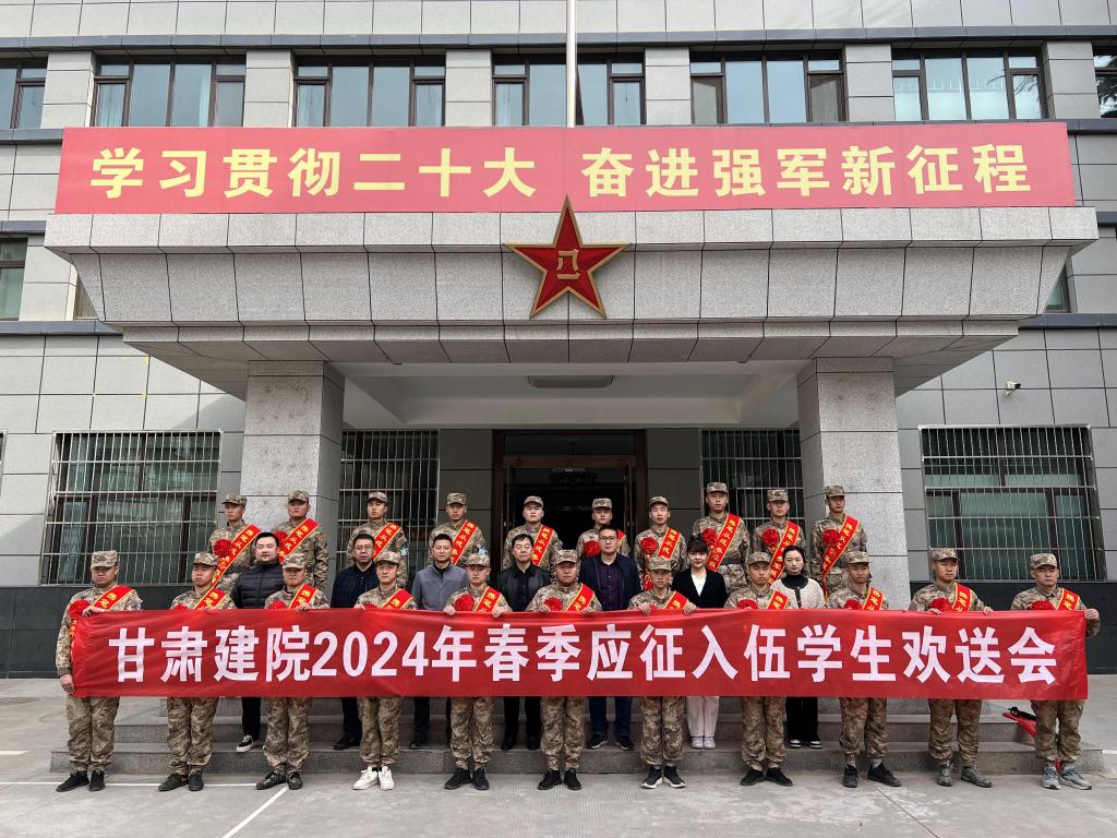 3月14日上午,学院2024年春季应征入伍大学生欢送会在七里河区人武部召开。学院党委委员、副院长高忠有,学生工作处处长、征兵工作站站长许庆兵,建筑经济管理系党总支书记李乐,学生工作处副处长张希玮等相关人员参加,会议由许庆兵主持。