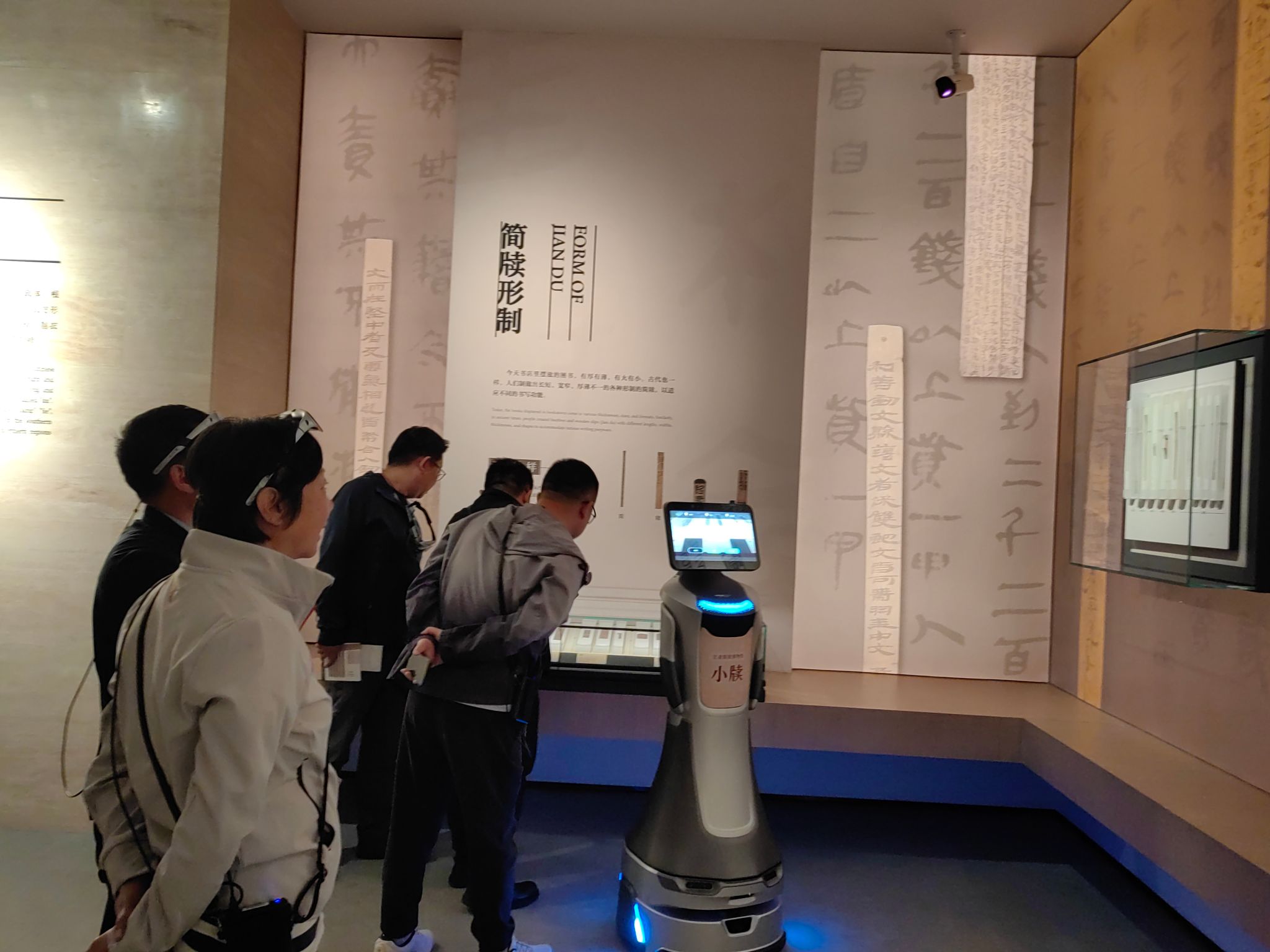 在博物馆工作人员的引导下,全体党员同志参观了“简牍时代”“简述丝路”“边塞人家”“书于简帛”四个基本陈列,并通过实物展示、图文解说、影像互动、场景复原等展示手段,了解了简牍的起源、发展和重要价值。从简牍发现的历史、简牍中的丝路故事、汉代边塞人的日常生活、汉简中蕴含的书法艺术等篇章中,感受了现代科技与传统文化结合的魅力,体会了简牍上承载的汉代灿烂文明和悠久文化历史,感悟了简牍中蕴含的丝路文化与中华智慧。