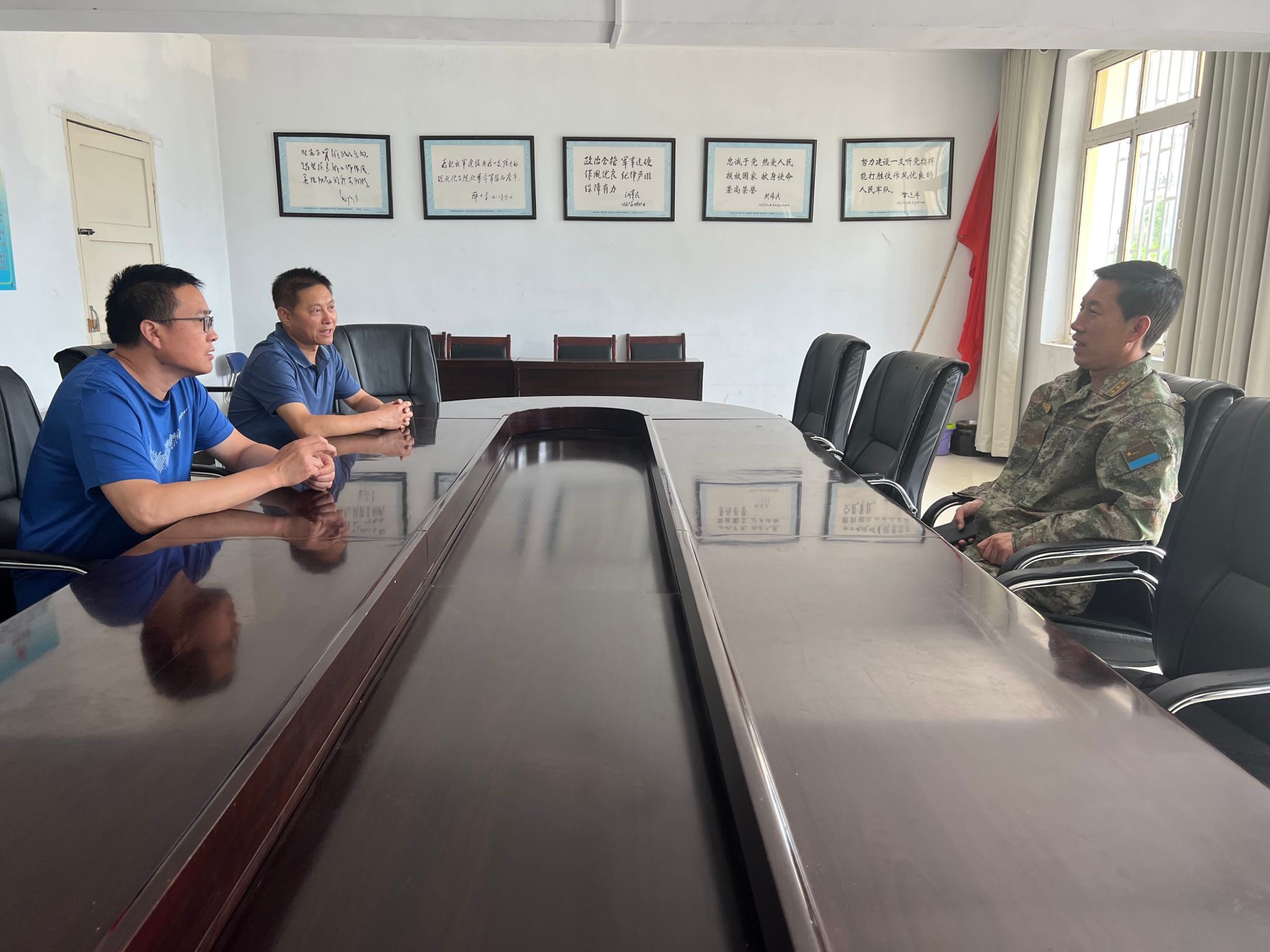 在训练基地,许庆兵处长与基地负责人进行座谈,详细了解了民兵训练的总体计划安排、餐饮住宿等情况,并对参训师生在烈日下坚持训练的优良精神风貌给予充分肯定。同时,他勉励参训民兵要守纪律、讲团结、争先进,发扬建院民兵能吃苦、能战斗、能奉献的精神,努力磨炼自己,练就过硬的本领,训练结束后希望民兵能将好的作风带回学院,注重发挥表率作用,引领良好校风。