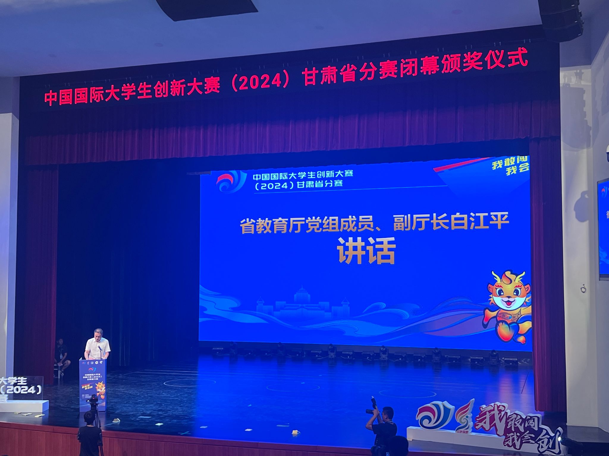 白江平在闭幕式中指出:本届大赛以立德树人为根本任务,是三位一体,统筹推进教育科技人才工作的重要实践,广大师生通过大赛和青年红色筑梦之旅,充分展现了甘肃大学生“我敢创、我会创”的放飞青春梦想。同时希望全省师生坚定不移深化创新创业教育改革,全面提高人才培养质量;二要坚定不移落实立德树人根本任务,培养创新创业生力军。三要坚定不移搭建产教融合新平台,不断夯实高质量发展基础。