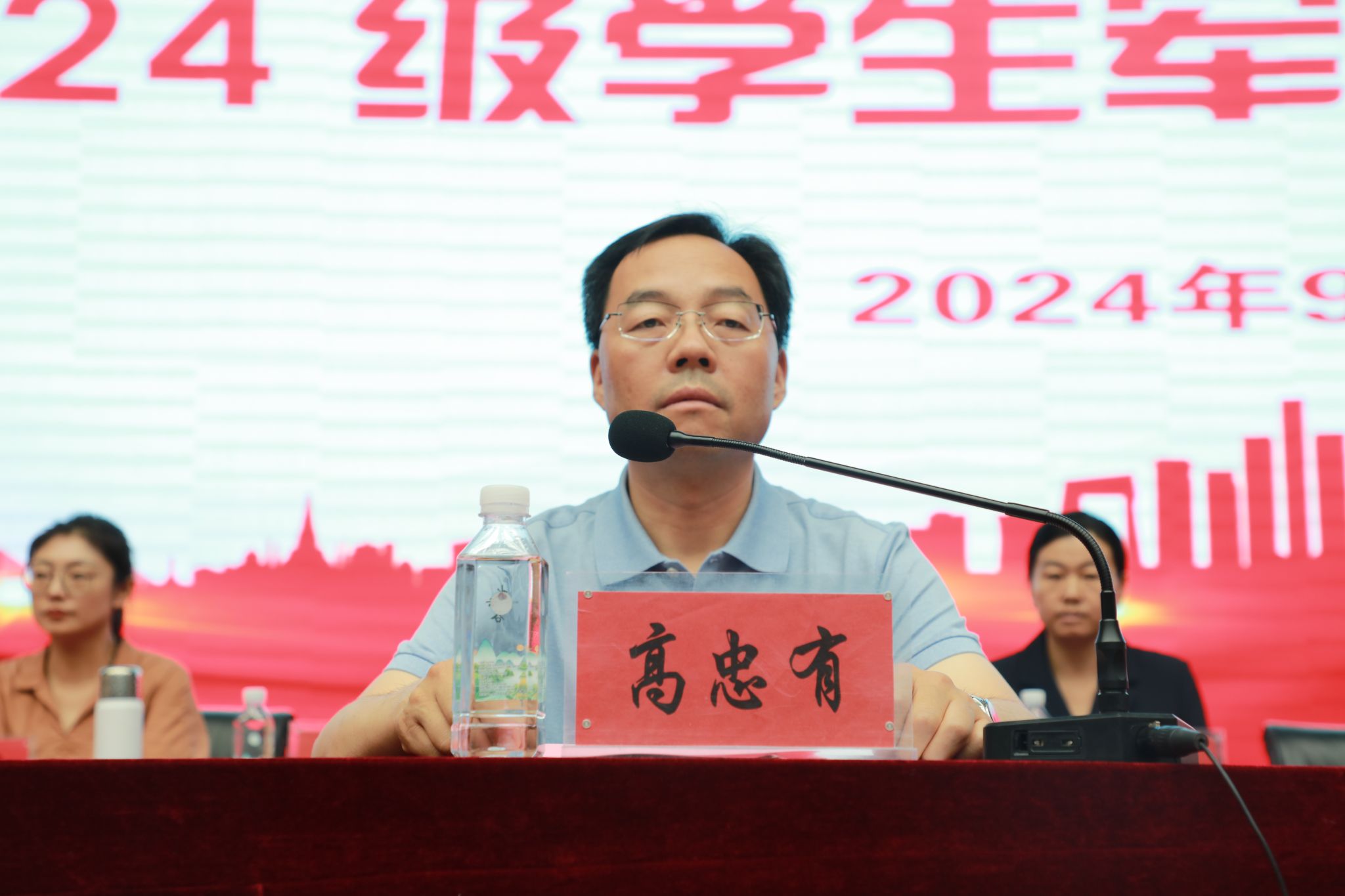高忠有同志作动员讲话,他表示,大学生军训不仅是贯彻落实有关法律规定的重要体现,也是学生在校期间履行兵役义务、接受国防教育的基本形式,更是同学们踏入大学校园、开启新生活的第一课。开展军事技能训练,不仅仅是对同学们身体素质的一次检验,更是对团队精神、纪律观念和爱国情怀的一次深刻教育。希望此次军训能够成为同学们成长历程中一段宝贵的经历,为今后的学习和生活打下坚实基础,并提出了四点要求,一是要深化认识,统一思想,充分认识学生军训的重要意义,自觉、积极、主动参训;二是要服从命令,遵守纪律,做到令必行、禁必止,以一名军人的身份严格要求自己;三是要团结协作,刻苦训练,做到不怕脏、不怕苦、不怕累,并在军训中与其他同学团结协作、共同进步;四是要注意安全,确保健康,注意饮食和休息,以最佳状态完成好每一项军训任务。