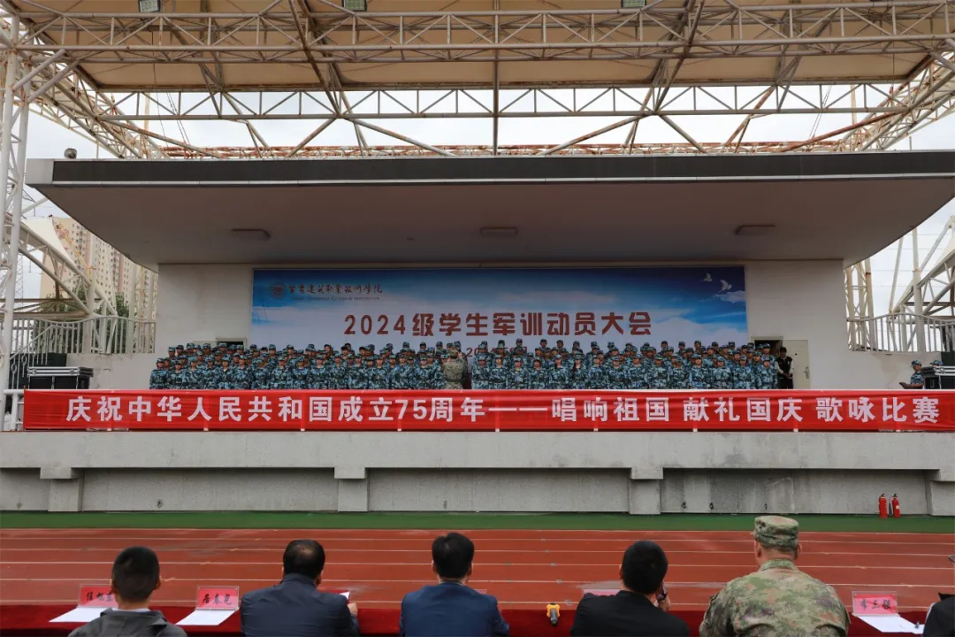 9月9日下午,学院“庆祝中华人民共和国成立75周年——唱响祖国 献礼国庆”歌咏比赛在风雨大操场火热举行。学院党委委员副院长高忠有,二级学院、相关处室负责人,2024级辅导员及2024级全体学生参加了比赛。