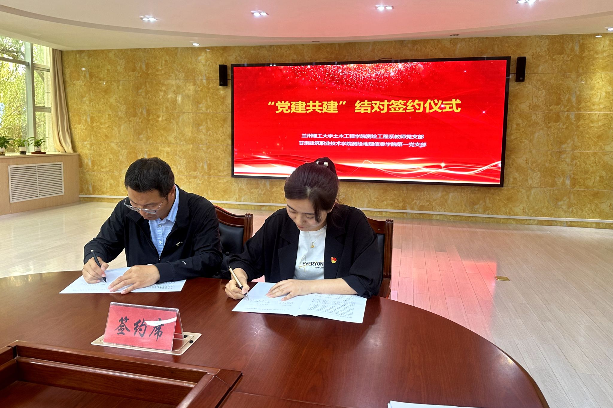 随后,测绘地理信息学院第一党支部书记徐敏、第二党支部书记卜春燕与兰州理工大学土木工程学院测绘工程系教师党支部书记李旺平签署了结对共建协议,正式确立了双方紧密的合作关系。