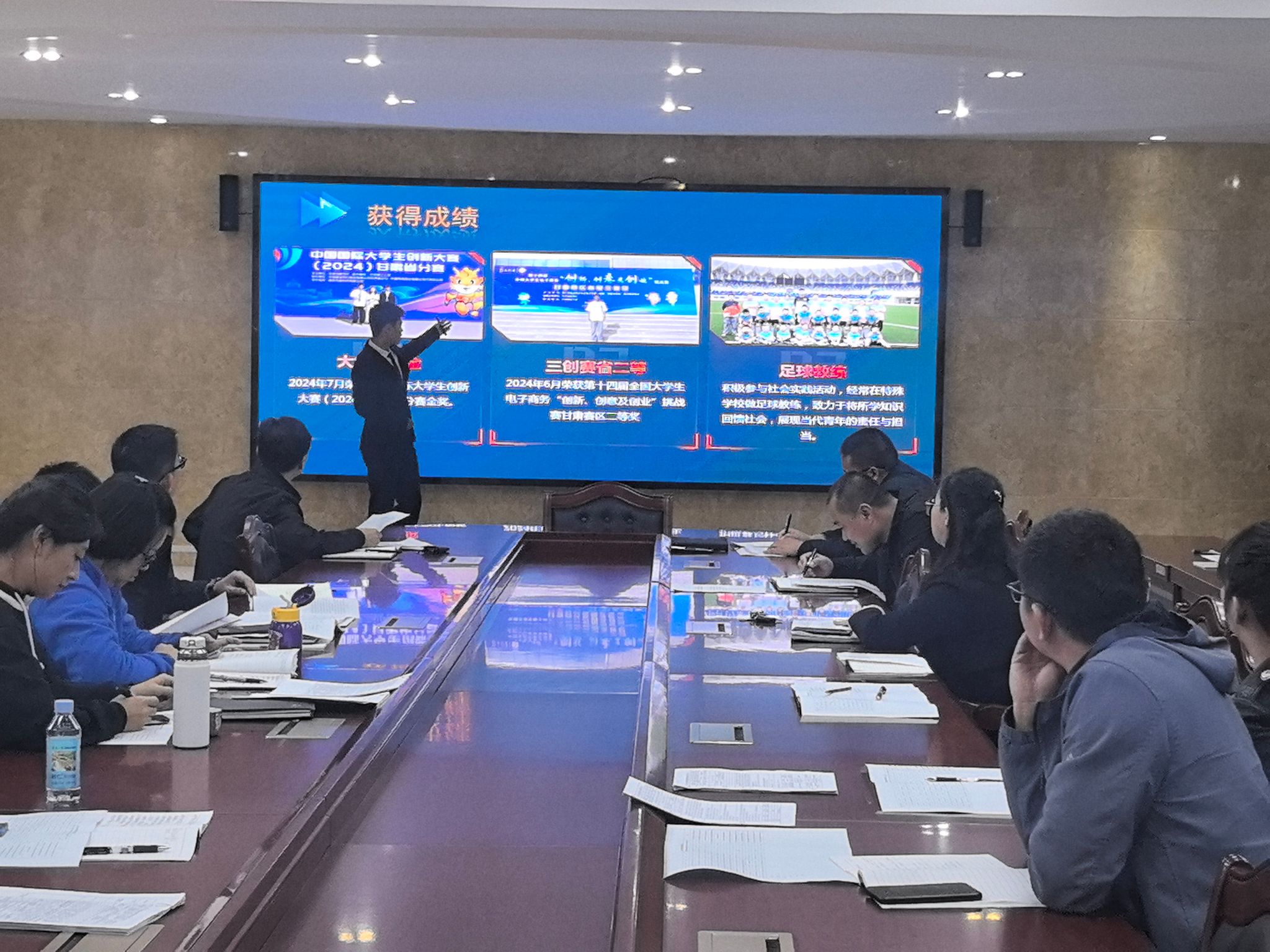 参会人员严格按照评选标准,仔细逐项审查国家奖学金申请推荐的学生的相关材料,12名同学现场进行汇报答辩,展示自己在思想品德、学习成绩、社会实践、创新能力、综合素质等方面的突出成绩,并对评审小组老师提出的问题予以回答。经过评审丁凯宇等12名同学符合国家奖学金申请条件、以实名投票方式表决,全体通过。