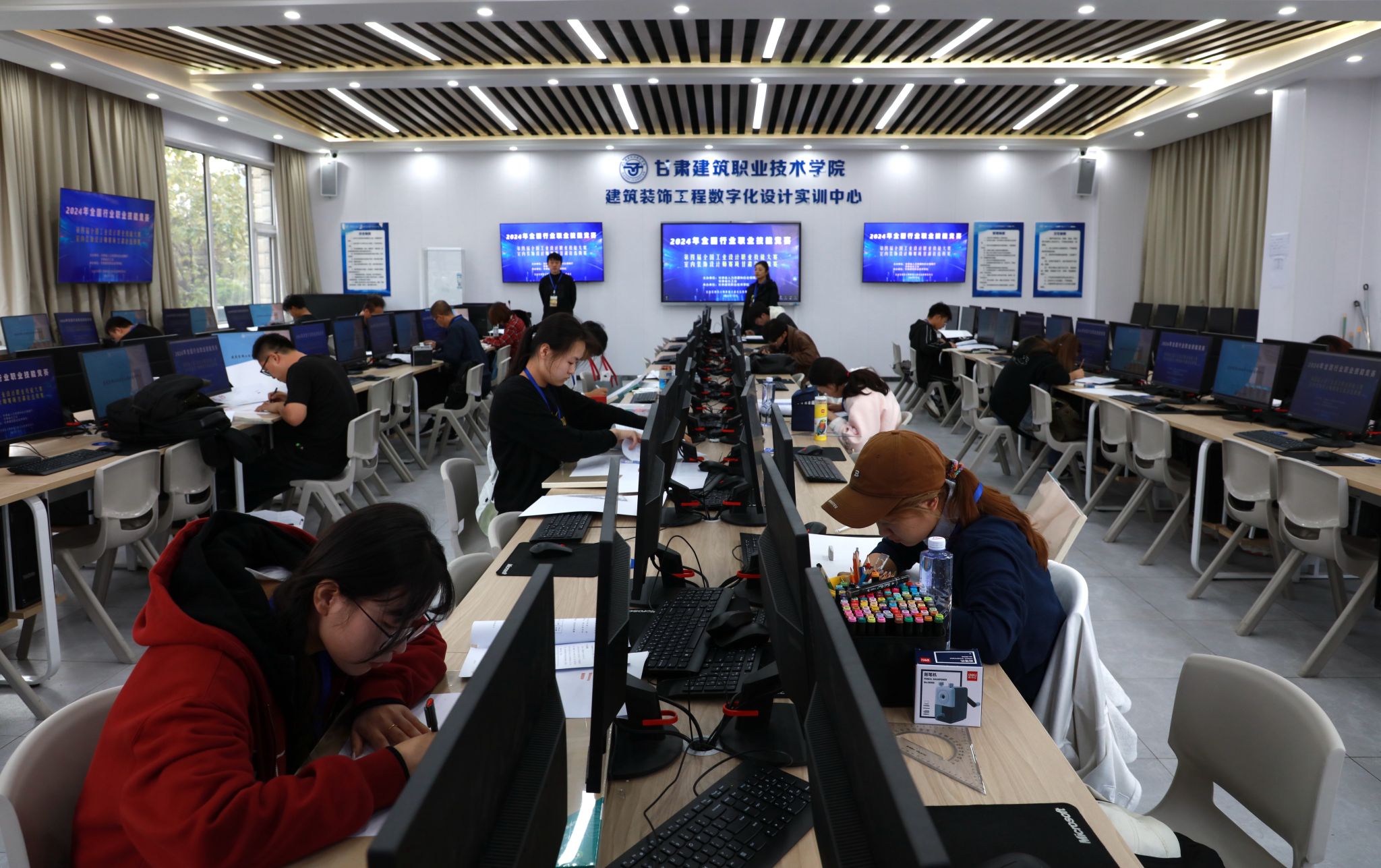10月19日,由我院承办的第四届全国工业设计职业技能大赛室内装饰设计师赛项甘肃省选拔赛圆满落幕。本次比赛共计2天,其中,理论模块的比赛已于昨日结束。实操模块的比赛于上午8点开始,参赛选手依次进行了抽签、检录入场。赛场上各位选手全神贯注,严格遵守比赛规则,展现了较高的专业技能水平和良好的竞赛风貌。我院工作人员精心组织安排,提前做好比赛设备的调试以及赛事各项服务保障工作,为比赛的成功举办提供了坚实的保障。