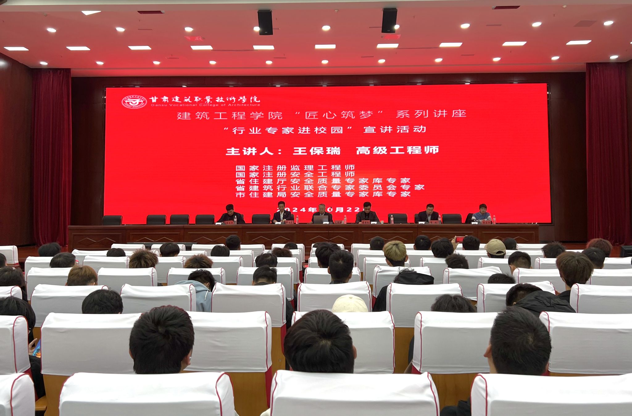 10月22日,建筑工程学院举办了“匠心筑梦”系列讲座——“行业专家进校园”学术活动。此次活动邀请了甘肃建筑职业技术学院客座教授、原省建设厅安全质量监督管理局副局长王保瑞主讲。我校党委委员、副校长李维敦,建筑工程学院领导班子成员,建筑工程学院专任教师和学生代表聆听了本次讲座。讲座由建筑工程学院副院长李斌主持。