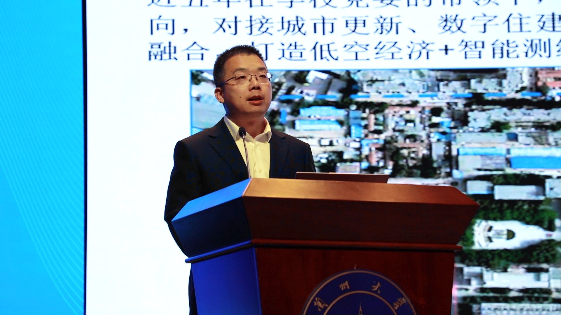 随后进行了科技成果项目路演,共有来自各个企业和高校的9个项目现场进行了讲解。我院测绘地理信息学院副院长周美川以《无人机在工程测量中的应用创新与实践》为题作报告。他介绍了学院目前的发展情况,并围绕无人机应用技术相关专业建设、人才培养、实习实训以及获得的成果作了汇报。