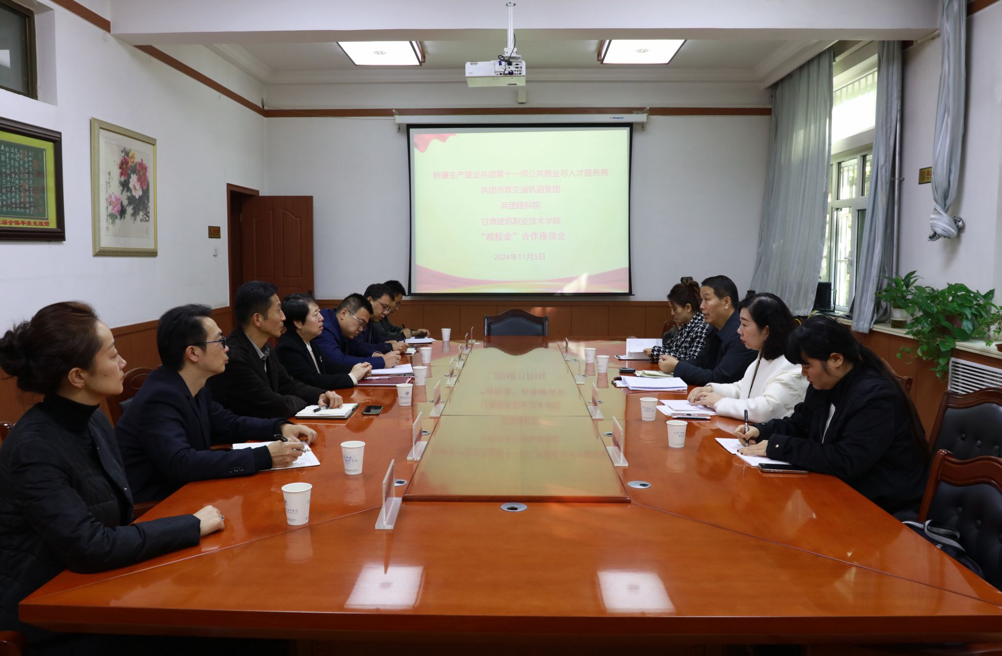 为贯彻落实习近平总书记关于就业工作重要精神,全力促进毕业生高质量充分就业,11月5日下午,新疆生产建设兵团第十一师公共就业与人才服务局、兵团市政交通轨道集团和兵团建科院相关部门负责人来我校举办企业推介会和政校企合作座谈会,学校党委副书记许洁,招生就业处和相关二级学院负责人参加会议。