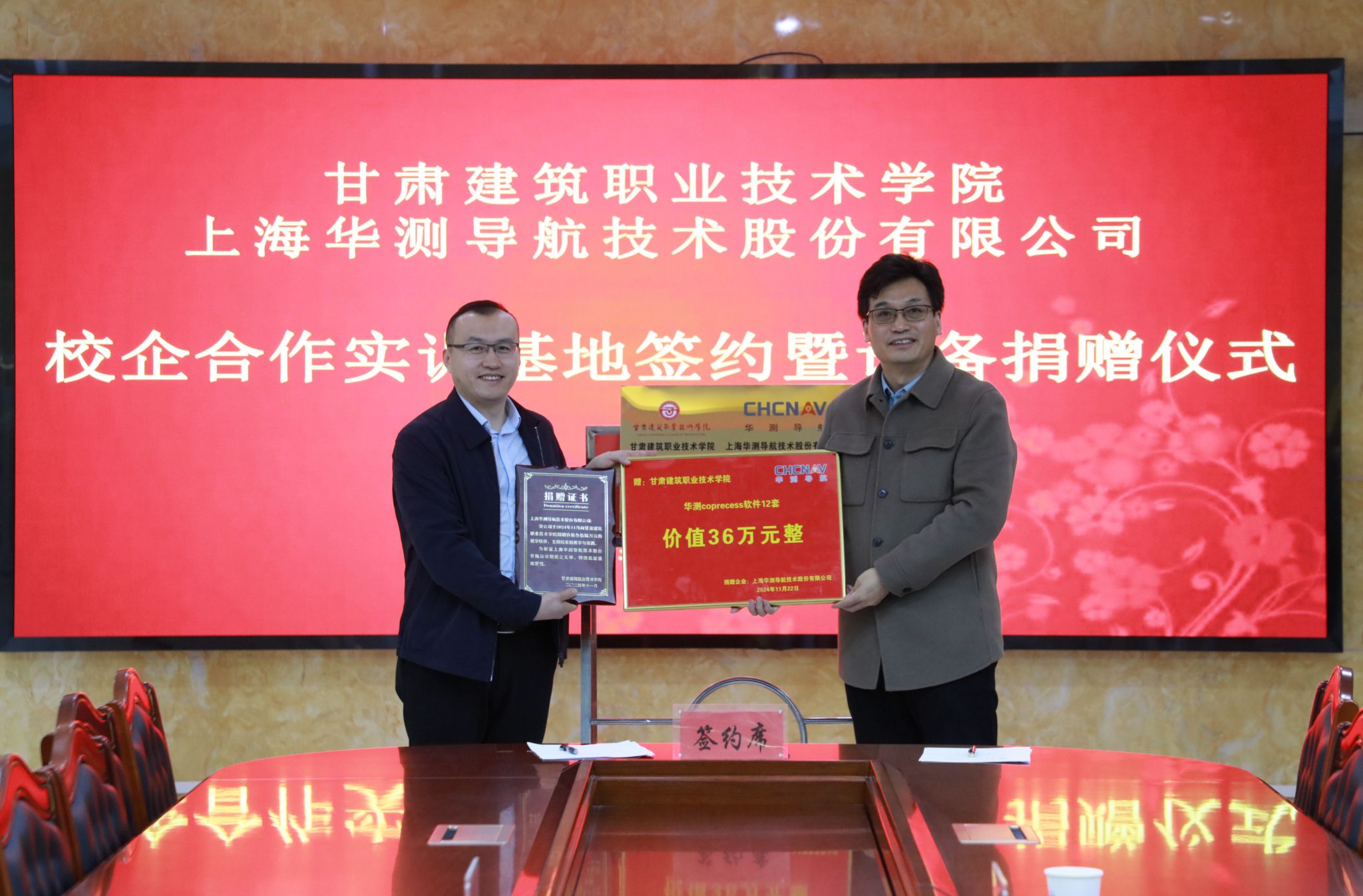 11月22日,甘肃建筑职业技术学院与上海华测导航技术股份有限公司举行了校企合作实训基地签约暨设备捐赠仪式。学校党委委员、副校长李维敦,上海华测导航技术股份有限公司副总经理徐益德、飞行学院院长彭清冲,兰州华测导航技术有限公司总经理魏於旭、副总经理杜希建、高校行业经理徐文涛,我校办公室主任黄治学,教务处副处长张宝鹏、测绘地理信息学院院长刘攀、副院长李海英以及教师代表参会。会议由刘攀主持。
