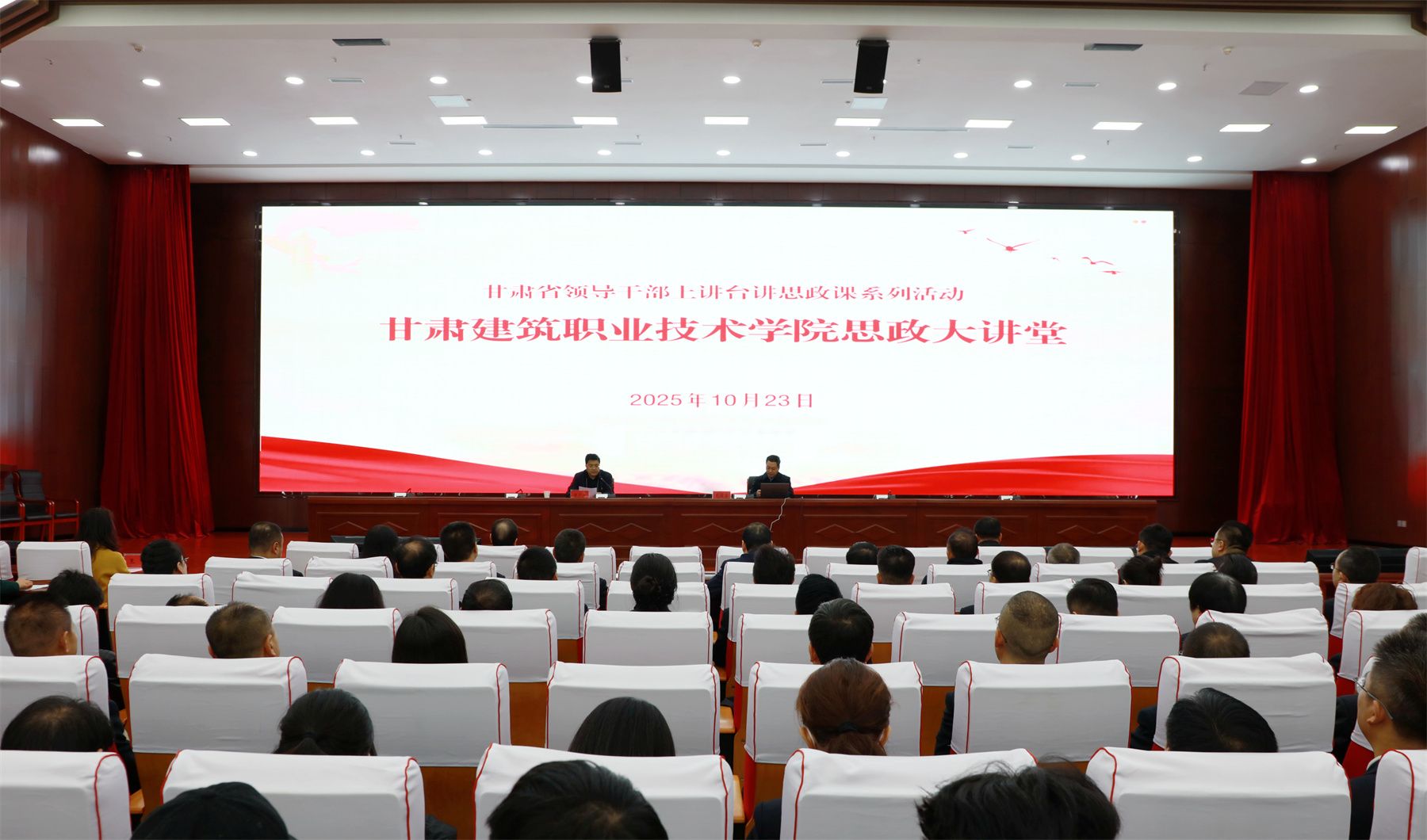 为深入贯彻落实习近平总书记关于学校思政课建设的重要指示精神,完善党政领导干部进校园开展思想政治教育长效机制,根据省委教育工作领导小组相关要求,10月23日,甘肃省科协党组书记、第一副主席包俊宗来我校讲授思政课,学校党委书记赵彦军及领导班子成员,全体中层干部,思政课教师,辅导员以及学生代表参加,活动由赵彦军主持。