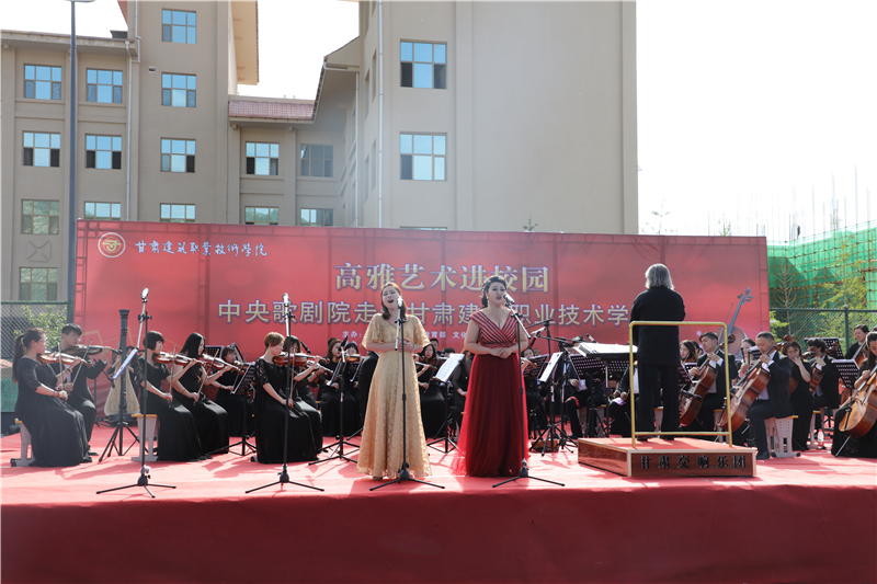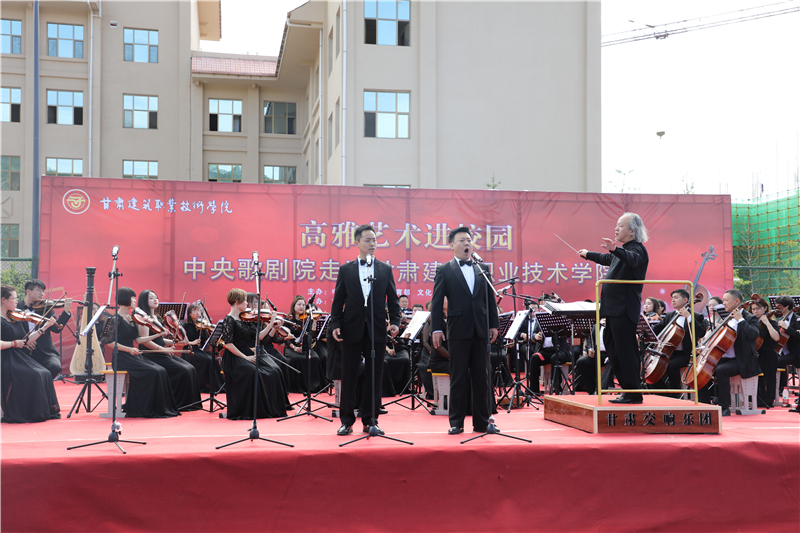5月23日下午,夏康乐校区阳光普照,体育场座无虚席,优美动听的乐曲响彻整个校园。来自中央歌剧院歌剧团、甘肃歌剧院交响乐团的80余名艺术家们为学院康乐校区和康乐中学4000多名师生带来了一场美妙绝伦的艺术盛宴。
