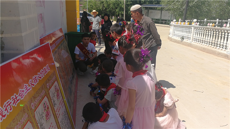 2018年6月21日下午,甘肃建筑职业技术学院的十多位老师同学们满载着25张中华优秀文化展板乘车来到对口扶贫村---康乐县虎关乡贾家沟村,开展中华优秀文化大篷车下乡活动,向这里的近百名师生和和村民们讲授民族时代精神、中华优秀传统文化和建筑文化。