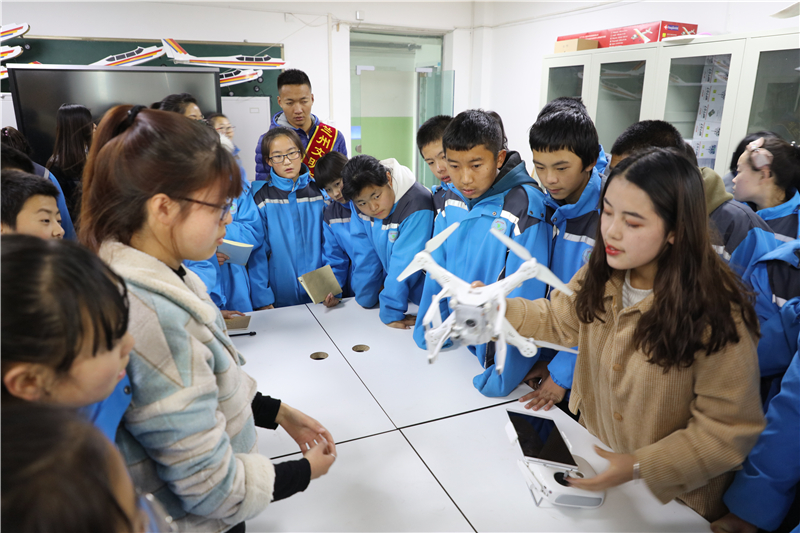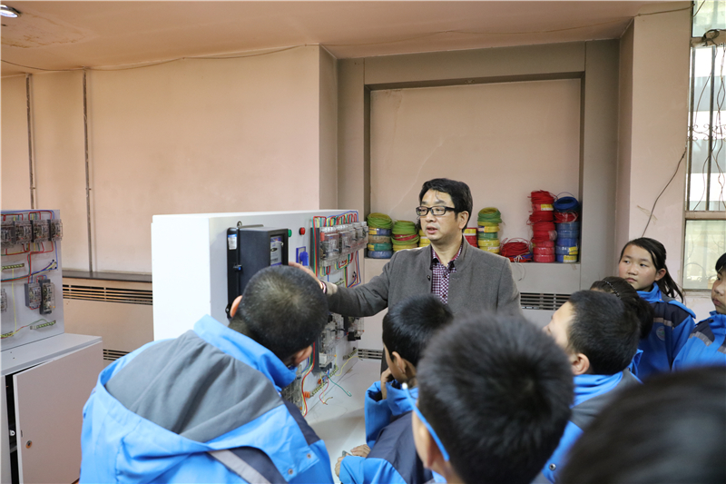 师生们还参观了交通系道桥实训室,同学们亲身体验了道桥施工场景,对平时见过的尚未体验的施工设备,这回真正“坐”在挖掘机车上时,从未有过的激动和开心,让孩子们充满了无限的好奇。在环工系电气实训室,同学们认真地聆听了汤洁老师的讲解,边听边观看电气设备。在建筑系实训室,同学们对装饰材料表现出了极大的兴趣,围在小车模型柜台前,开心地比划着自己认识的车型。在测绘系无人机实训室,同学们观看了无人机模型,听了老师的精彩讲解后开心的用手去触摸模型。